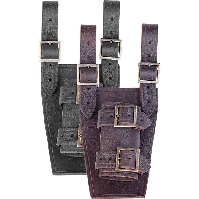 No matter your character, the Geralt Vertical Sword Frog makes a great accessory as well as a wonderful way to carry your sword at your side. Made from premium leather, this sword frog comes in two colors. It features a rectangular base plate. Attached to the base plate is a vertical loop. The size of the loop adjusts with two straps and rectangular brass buckles. At the top of the base plate, there are two more straps. They form adjustable loops that allow the frog to slide onto a belt, not included. Also, since the loops are adjustable, they allow the wearer to angle the frog as desired. This means that you can wear it on either your left or right side. Add this frog to your roleplaying persona and take it to your next LARP battle.