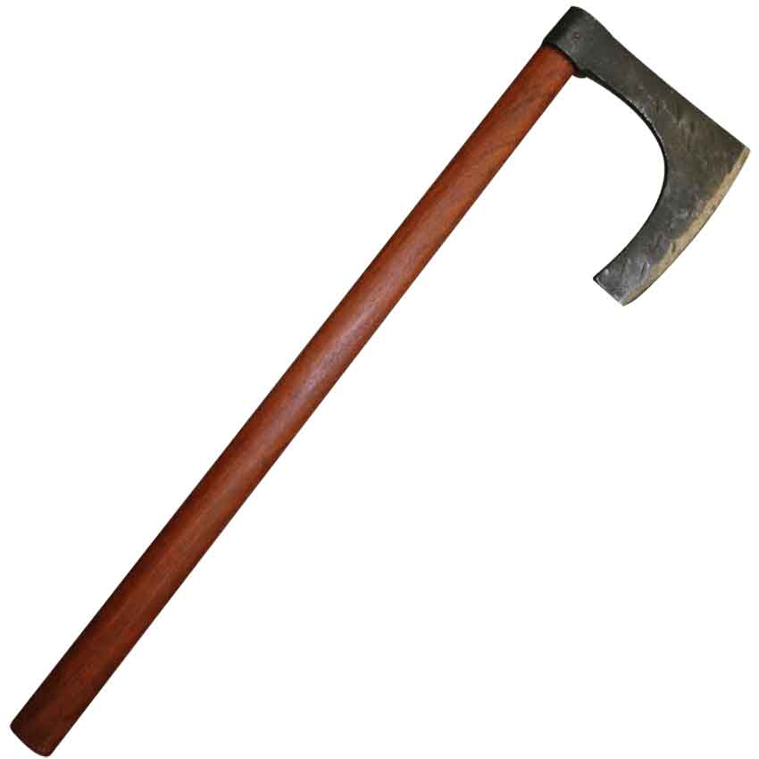 The traditionally styled Hamall Stage Combat Fighting Axe features a tough steel blade, beard, and a smooth handle made of sturdy hardwood. Versatile, this axe is sure to be a staple in the arsenals of any axe or stage fighting enthusiast. The heavy blade of the axe is thick but not sharp, not intended for actual chopping or hacking, although the high-quality of this piece makes it an excellent and reliable prop. The rather long beard of the axe is longer than the width of the head. With its heavy weight, the handling of this axe should be similar to that of the actual tool.
