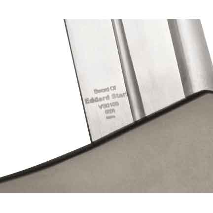 Stoic, duty-bound, and honorable – Ned Stark embodied the values of the North. As the scion of one of the great Houses of Westeros, Ned had considerable power, as well as great skill in war. Now, you can make Ice, the Sword of Eddard Stark, your own. Ice was, in lore, a Valyrian steel sword with a spell-forged blade that made it far superior in terms of the castle-forged steel that many of the weapons in Westeros were made from. In the books, Ice had a dusky, smoky hued blade, although in the HBO hit series, A Game of Thrones, its appearance was somewhat changed. And for all those who saw the sword that Ned Stark, played by actor Sean Bean, wielded and wanted it for their own, now they have it. This version of Ice features a long, hefty, wide blade forged from 1060 high carbon steel, with an unsharpened, false edge to give it a realistic look. The blade features a unique triple-fuller design, with two short ones along the base of the blade and one longer one down its spine that ends just before the broad point. The wide guard features grey-iron finished quillons, tipped with brass knobs, while the full length tang is encased in a hardwood hilt. The stylized scent stopper pommel is finished in antique brass. Every detail from the filming prop has been recreated in this version of the Valyrian steel sword Ice, and it comes complete with a display plaque, silk screened with a direwolf emblem, and a certificate of authenticity. The blade is also engraved with a serial number, just near the base of the blade at the hilt. Designed for collection and display, this version of Ice, the Sword of Eddard Stark, is a handsome and hefty blade that will astound all those who see it. It stands as proof at the power that Ned Stark wielded, not only as the Lord of Winterfell and Hand of the King, but also as a great warrior.