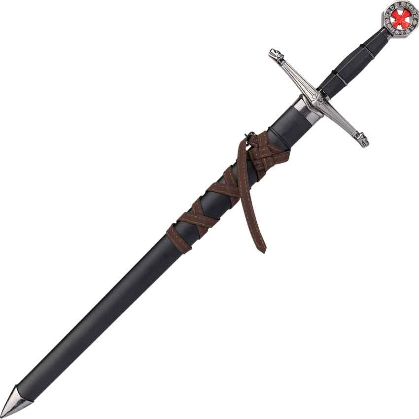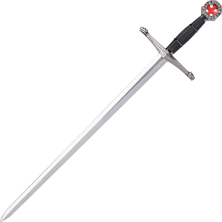 - Displays a darkened finish on the guard and a red cross on the pommel