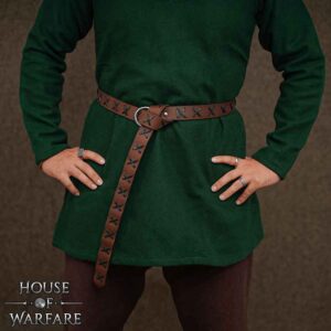 Some medieval outfits go well with a black belt, while others benefit from a brown one. The choice can be a difficult one, but luckily, with the Laced Leather Ring Belt in Brown with Black, you can wear both colors at once. It comes in three lengths.