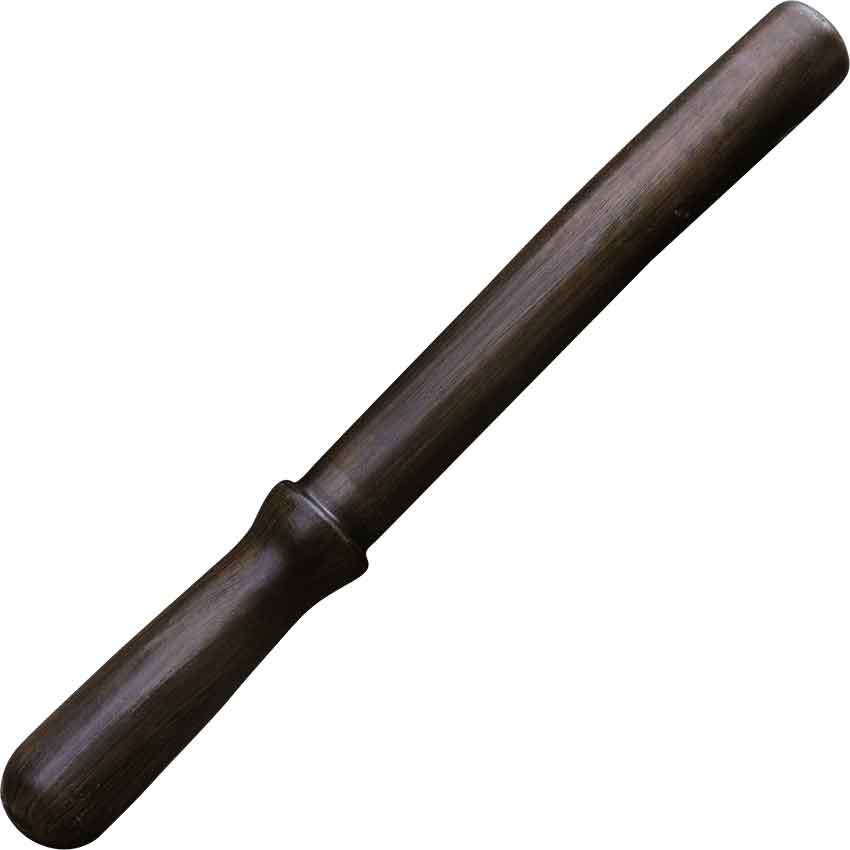 While at sea, you and your fellow sailors are suddenly attacked. You have no time to grab your sword, so you fight with the LARP Belaying Pin instead. A belaying pin is an item traditionally used for securing ropes on sailing vessels. This pin has a flexible tubing core surrounded by closed cell foam. There is a latex coating on top. The pin has a wood-like appearance. On one side of the pin is a round handle with a rounded bottom. The handle tapers inward, and then has a raised portion at the top. On the other side, the handle is straight and cylindrical, like its real-life counterpart. This LARP weapon is great for roleplaying events, pirate cosplay, and stage productions.