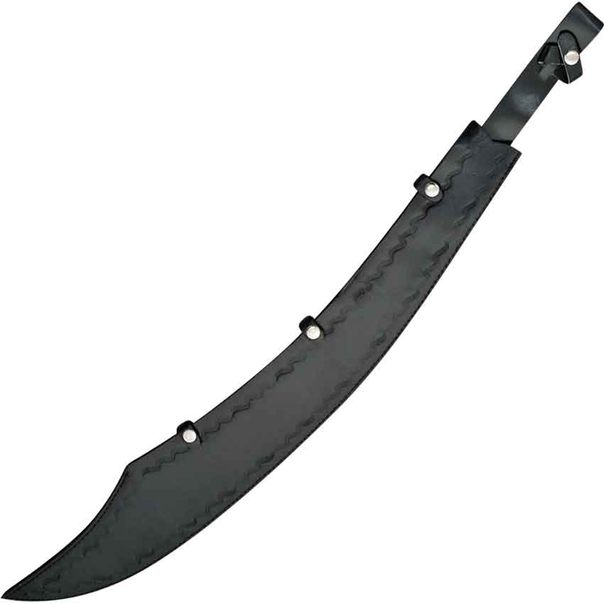 Gaze upon this fantasy-inspired broadsword. Consider the warriors that could wield this beautiful sabre. Whether you take on the role of Persian royalty or sail the sea as a clever pirate, the Fantasy Scimitar Sword is a fine weapon. Enjoy the firmness of the pakkawood hilt as you wield this well-balanced blade. Admire the red and black tones on the handle. Observe the silver finish and elegant curves of the guard and pommel. Add this fantasy sword to your costume or keep on display with the included black leather sheath.