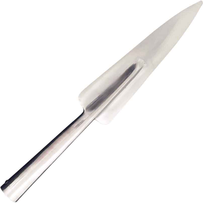 In the earliest of medieval times, simple weapons, like the spear and the axe, were favored because of the ease that they could be made and replaced. And as this decorative Spearhead shows, that popularity is well-deserved, as simple can also mean effective. This spear head has a pointed design. This spearhead comes on a short wooden rod. If you are looking to create a longer spear, then you can check out one of our staves like the 84 Inch Pole Stave (OX005), sold separately. The spearhead is crafted from mild steel. It is not recommended for throwing. On its own, this Spearhead makes a nice collectible to include in your collection. It also looks great when it is given due attention and turned into a spear that will awe all those who see it.