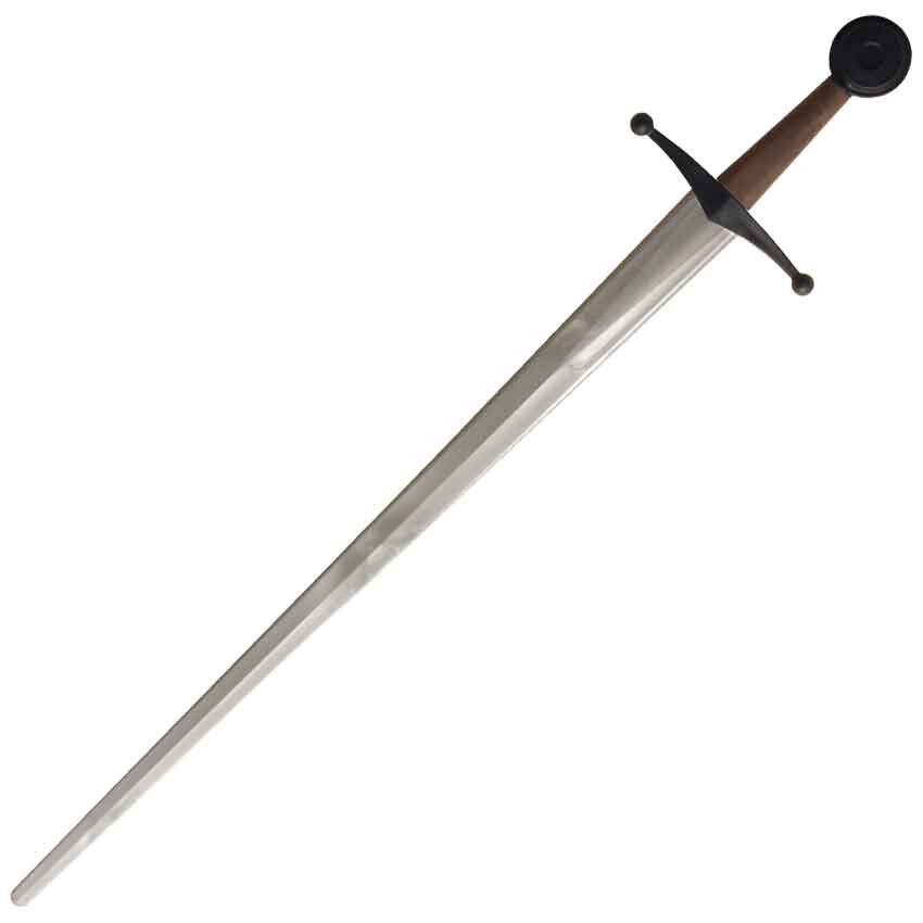 The ball-shaped finials on the guard and the rounded pommel are designed for sparring safety. They allow virtually no pointed or sharp edges that could catch, pierce, or puncture. Meanwhile, the grip is made from a rubber-like material that is designed to absorb the impact of strikes, while also providing a tight fit to the tang.